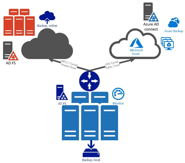 The principle of Public cloud is to have a solution residing on a resilient cloud provider structure. Using cloud providers such as Amazon Web Services AWS or Microsoft Azure platforms. These benefit from utilising the Infrastructure as a Service IaaS solutions, Platform as a Service PaaS and Software as a Service SaaS. This can be a hybrid model that compliments the solution provided on your in house infrastructure through a secure VPN tunnel or full cloud based solutions. Both require a VPN from your internal network but logically become as if provided onsite. These solutions can also be used to provide a DMZ based environment to secure your backend data from a front end service such as a Web Portal or Online SharePoint.